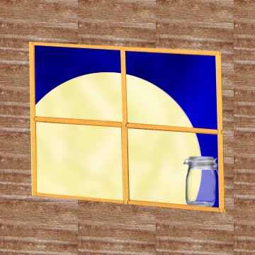 PSで何が出来るか試しながら窓を作ってみました。 窓を開けたらおおきなお月さまが見られたらいいのに。